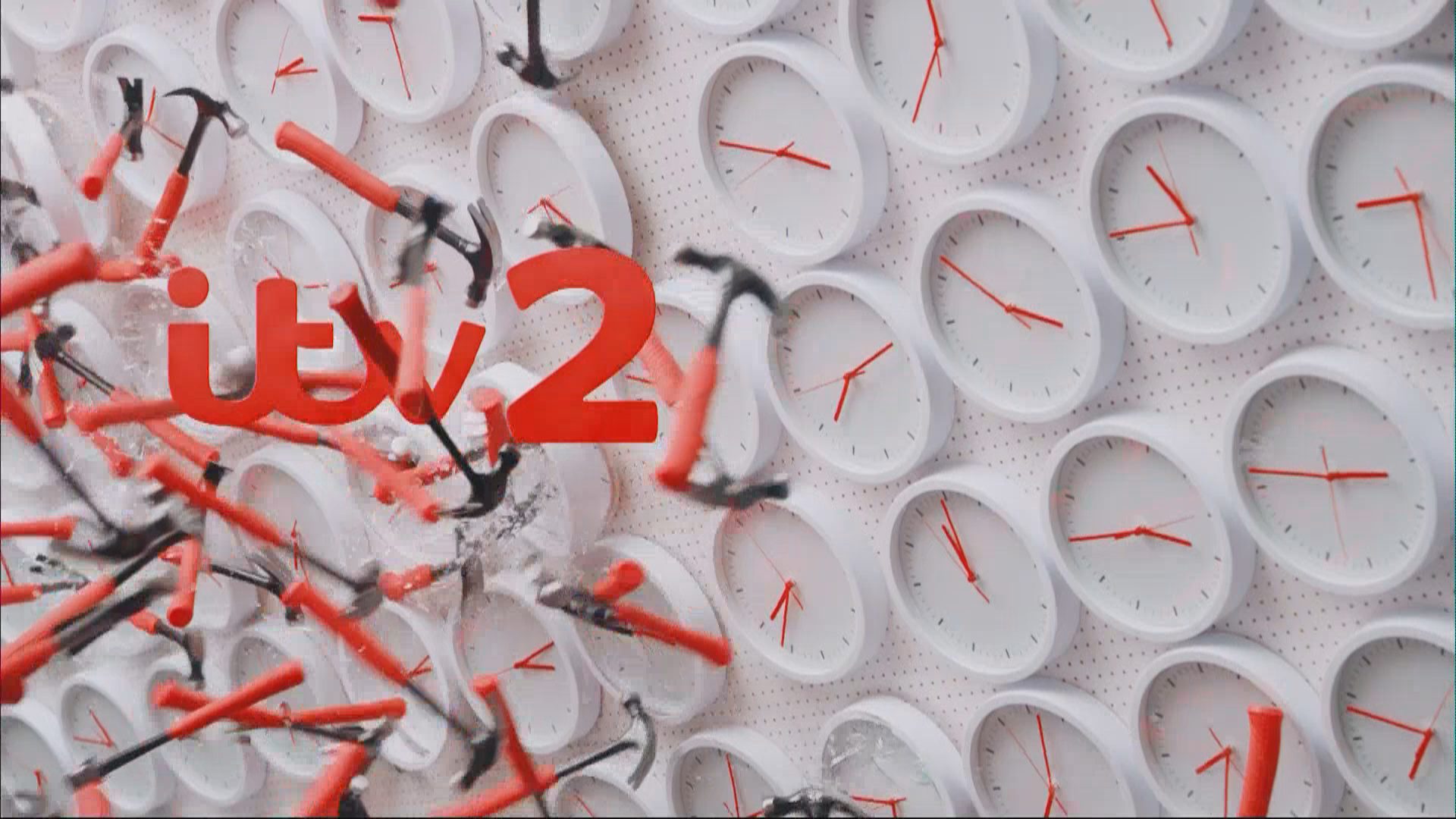 On 12 August 2015, ITV2 underwent a rebrand with a new presentation package created by ManvsMachine for ITV Creative. The new idents feature the ITV2 logo integrated into several pun-inspired scenarios, such as traffic ‘jams’ and hot ‘dogs’. These scenes are assembled on broadcast, allowing for around 300,000 possible combinations.